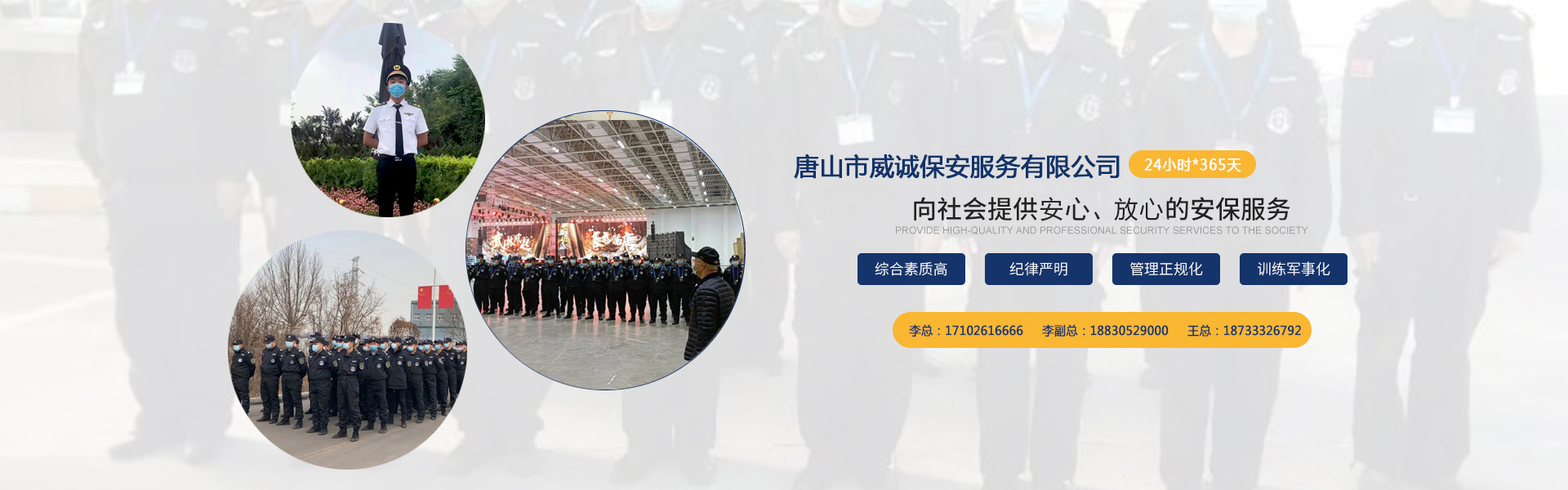 以專創(chuàng)業(yè),以信致遠(yuǎn)。威誠保安服務(wù)有限公司將珍視各利益相關(guān)方的信賴,以堅(jiān)實(shí)的工作績(jī)效協(xié)助客戶實(shí)現(xiàn)安心、有效、和諧的運(yùn)營,以嚴(yán)格的管理為員工職業(yè)發(fā)展提供平臺(tái)支持,成為法治和諧社會(huì)的正能量,成就威誠品牌。